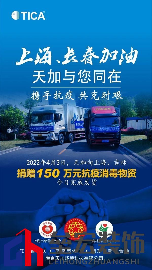??2022年4月3日,南京天加環(huán)境科技有限公司向上海市慈善基金會(huì)、吉林省慈善總會(huì)捐贈(zèng)150 萬元抗疫消毒物資,攜手上海、長(zhǎng)春兩地抗疫共克時(shí)艱??挂呦疚镔Y已于今日完成發(fā)貨。