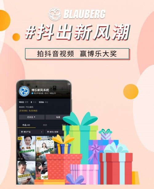 |活動時間| 2022年4月22日——2022年5月22日 |參賽流程| 關(guān)注 @博樂新風(fēng)系統(tǒng) 抖音官方賬號,在活動時間內(nèi)完成抖音視頻拍攝以及上傳拍攝指定內(nèi)容的新風(fēng)視頻,視頻發(fā)布時帶上標(biāo)簽 #抖出新風(fēng)潮 ,并@博樂新風(fēng)系統(tǒng) (以確保我們能看到您的視頻哦) |獲獎評選規(guī)則| 截止2022年5月22日晚上8點,視頻點贊數(shù)前三名分獲第一,第二,第三等獎。點贊數(shù)第四名以及之后的合計20位,獲人氣獎。 *每位參賽者僅取一支點贊數(shù)最高視頻作為參賽視頻進行評選。 |獲獎公布| 獲獎?wù)邔⒃?022年5月30日前,收到來自 @博樂新風(fēng)系統(tǒng) 的抖音私信獲獎通知 拍攝規(guī)范 |主題| #抖出新風(fēng)潮 用前后對比形式表現(xiàn)新風(fēng)為生活帶來的變化,可結(jié)合簡單舞蹈,變裝或是小短劇來體現(xiàn)主題。 |參考| 使用新風(fēng)前人很頹廢,不愛干凈和打扮。使用新風(fēng)后,不僅空氣潔凈了,整個人都變得神清氣爽。