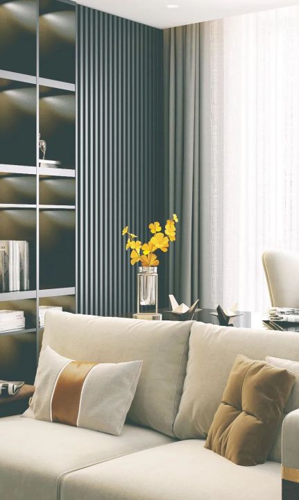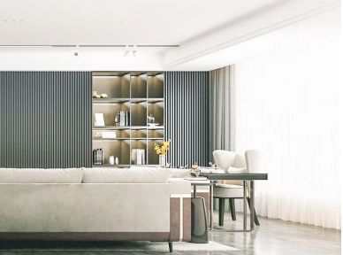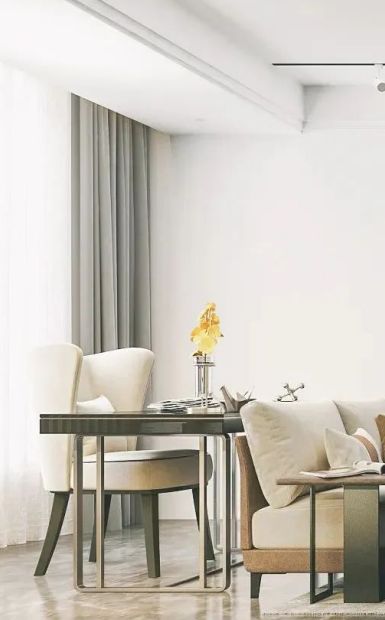 ??從沙發(fā)到陽(yáng)臺(tái),軟裝的線條婉轉(zhuǎn)浪漫,用輕奢金屬勾勒意境。 ??嵌入式書柜提升整體格調(diào),材質(zhì)與色調(diào)的變幻與桌椅在光影點(diǎn)綴下,搭配出豐富層次和質(zhì)感,讓輕奢的表達(dá)更加柔軟。