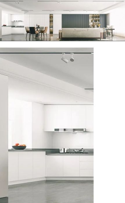 ??本案以白色為主調(diào),從廚房到客餐廳的一體化設(shè)計(jì),各功能區(qū)之間不做隔斷更寬敞明亮,從視覺上放大效果同時(shí)增進(jìn)與家人間的互動(dòng)交流。