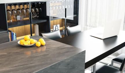 ??一體化的餐廚打破空間阻礙,保證了空間和視覺的和諧統(tǒng)一,給人的觀感不僅成熟大氣,還折射出低調(diào)的時(shí)尚。