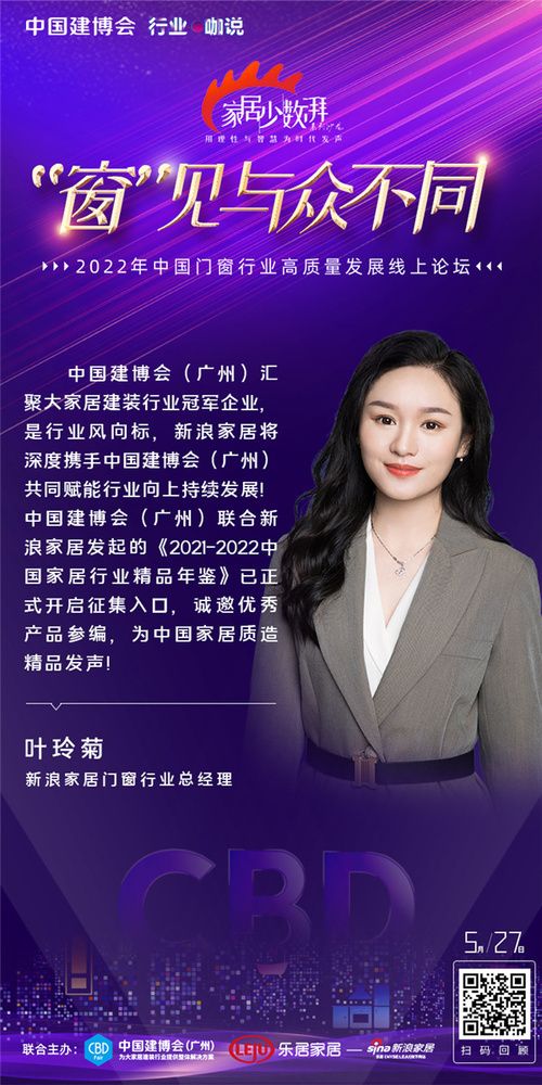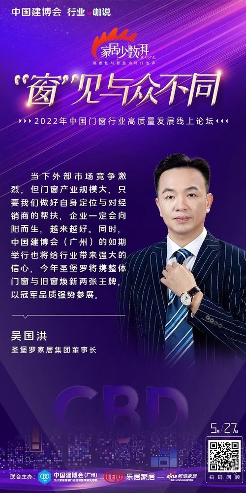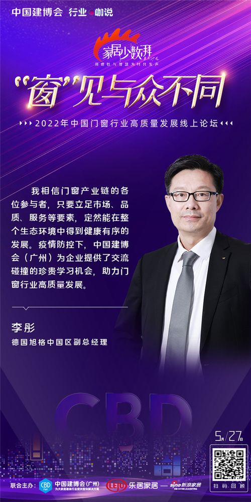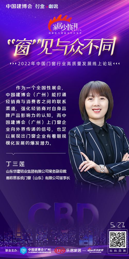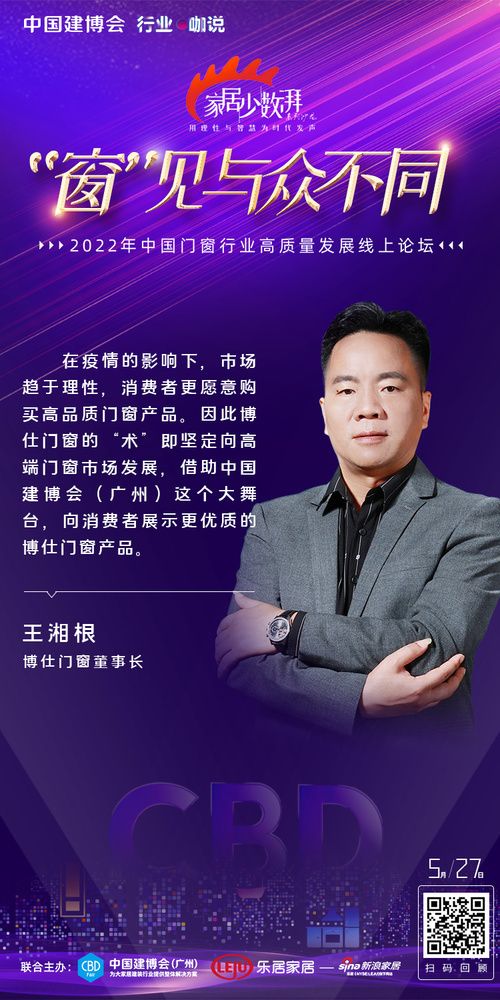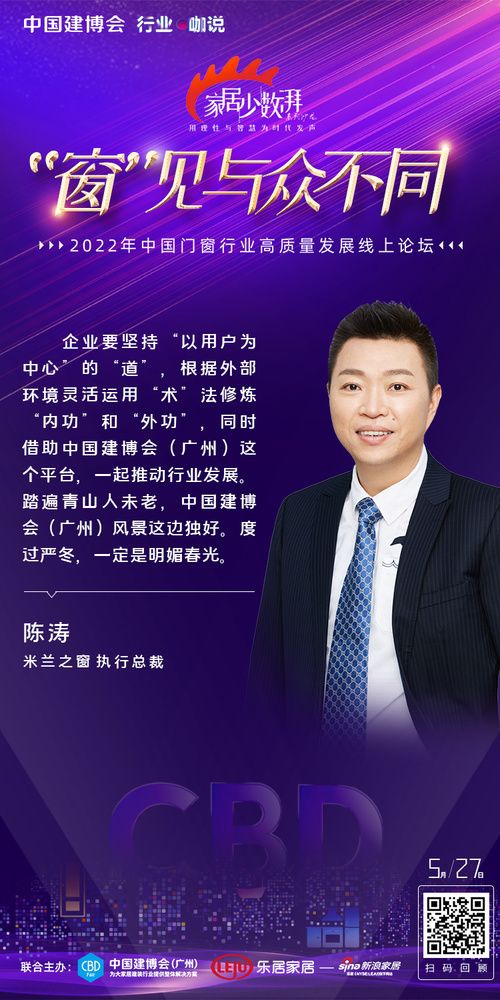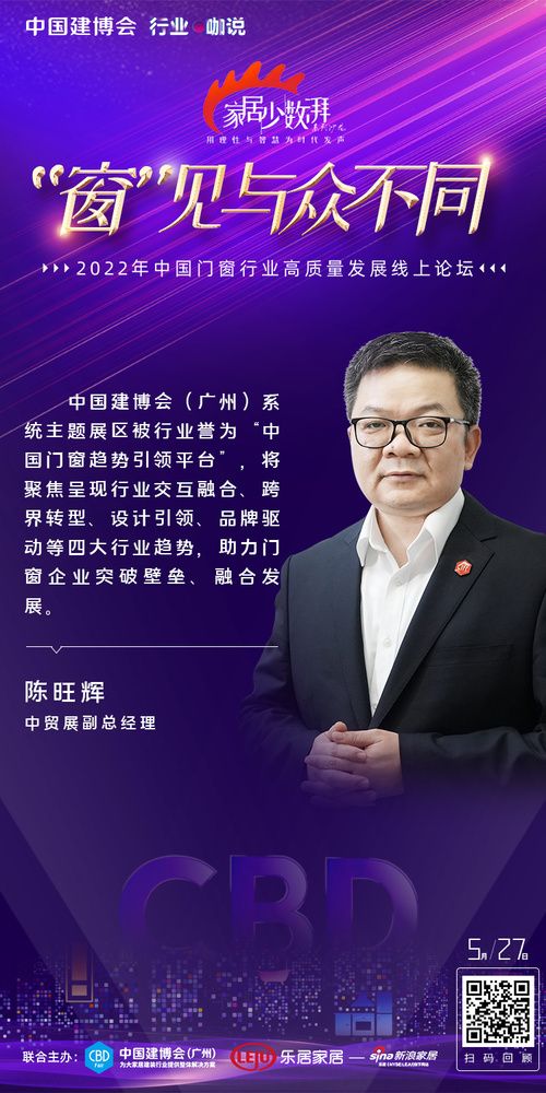 ??“窗”見(jiàn)與眾不同 中國(guó)門(mén)窗行業(yè)高質(zhì)量發(fā)展線(xiàn)上論壇圓滿(mǎn)舉辦 5月27日,為提振大家居建裝行業(yè)發(fā)展信心,中國(guó)建博會(huì)(廣州)攜手新浪家居特別主辦《家居少數(shù)湃》線(xiàn)上沙龍——“窗”見(jiàn)與眾不同。論壇現(xiàn)場(chǎng),新浪家居門(mén)窗行業(yè)總經(jīng)理葉玲菊對(duì)話(huà)一眾優(yōu)秀企業(yè),共探中國(guó)門(mén)窗產(chǎn)業(yè)發(fā)展新格局、新動(dòng)向。 中貿(mào)展副總經(jīng)理陳旺輝:中國(guó)建博會(huì)(廣州)系統(tǒng)主題展區(qū)被行業(yè)譽(yù)為“中國(guó)門(mén)窗趨勢(shì)引領(lǐng)平臺(tái)”,將聚焦呈現(xiàn)行業(yè)交互融合、跨界轉(zhuǎn)型、設(shè)計(jì)引領(lǐng)、品牌驅(qū)動(dòng)等四大行業(yè)趨勢(shì),助力門(mén)窗企業(yè)突破壁壘、融合發(fā)展;