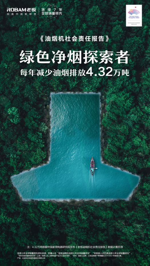 在環(huán)境責(zé)任承擔(dān)上,針對烹飪油煙、大氣污染問題,老板科技大吸力油煙機(jī)采用多項(xiàng)控?zé)熂夹g(shù),達(dá)到節(jié)能減排的最大效果:雙腔雙吸,精準(zhǔn)垂直捕獲油煙;三面靈攏,防止油煙側(cè)逃;超薄近吸,從源點(diǎn)將油煙吸走。同時(shí),老板油煙機(jī)在油脂分離度指標(biāo)上達(dá)到96%-97%,經(jīng)估算,每年能夠減少油煙排放4.32萬噸。同時(shí)老板油煙機(jī)變頻電機(jī)的數(shù)字技術(shù)也使得電機(jī)磨損率更低,使用效率可高達(dá)78%,比傳統(tǒng)油煙機(jī)的電機(jī)提升了30%的效率,不但省電節(jié)能,還大大的提升了電機(jī)壽命。老板油煙機(jī)采用高壓靜電吸附耦合活性炭過濾技術(shù),能夠有效避免油煙逃逸,減少了烹飪對空氣環(huán)境的污染,用科技手段保護(hù)環(huán)境,達(dá)到經(jīng)濟(jì)效益與環(huán)保效益的最佳平衡。  在消費(fèi)者服務(wù)上,老板電器堅(jiān)持以用戶為核心,針對很多家庭老舊油煙機(jī)吸力不強(qiáng)帶來的油煙危害,老板開啟了一場“老板全民換新計(jì)劃”,呼吁人們及時(shí)告別家中的老化油煙機(jī),遠(yuǎn)離油煙危害,享受美好的廚房生活。