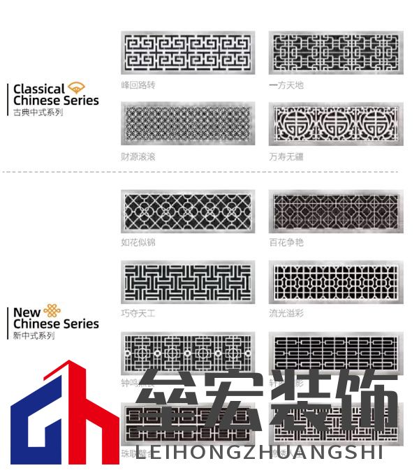 埃瑞德裝飾風(fēng)口-高山流水款 同時,埃瑞德還有自主設(shè)計的十多款中式花紋,并獲得了產(chǎn)品的外觀專利證書??晒┰O(shè)計師和業(yè)主搭配不同的裝修風(fēng)格。