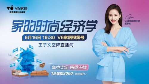 居然之家執(zhí)行總裁王寧錄制助力視頻 除線(xiàn)下門(mén)店活動(dòng)外,線(xiàn)上也福利不斷。在年中大促的節(jié)點(diǎn)上,6月16日-18日,在V6家居視頻號(hào)直播間,兩大品牌將進(jìn)行聯(lián)合直播,為廣大消費(fèi)者帶去海量超值好物、超多福利。 并且,6月16日晚,V6家居品牌大使、知名演員王子文也將空降直播間,與廣大粉絲朋友們見(jiàn)面聊天,共同探討如何學(xué)習(xí)《家的時(shí)尚經(jīng)濟(jì)學(xué)》。