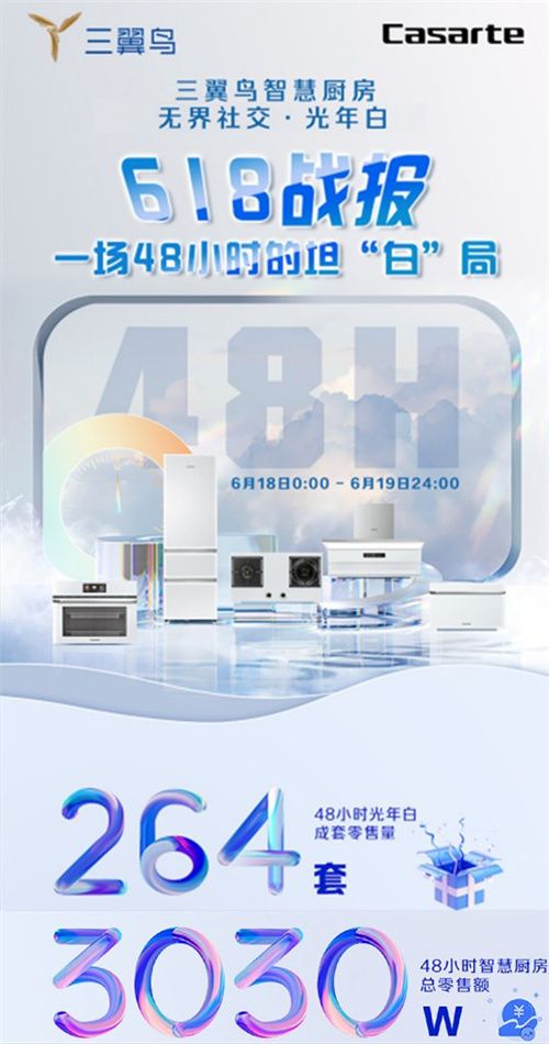 這些充滿溫度的智慧服務(wù)也促進(jìn)品牌實(shí)現(xiàn)了高質(zhì)量增長(zhǎng)。本次618期間,三翼鳥廚房客單價(jià)不斷提升,“光年白”廚房平均成交單價(jià)為23644.8元,其中單筆最高單價(jià)遠(yuǎn)超10萬(wàn)元,進(jìn)一步拓寬了整體品牌的增長(zhǎng)空間。從硬件到場(chǎng)景,數(shù)倍的增長(zhǎng)差距也為行業(yè)未來(lái)發(fā)展方向指明道路,同時(shí)推動(dòng)著用戶體驗(yàn)不斷升級(jí)。
