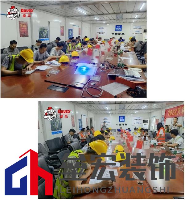 右三:中國(guó)陶瓷工業(yè)協(xié)會(huì)瓷磚粘貼技術(shù)專業(yè)委員會(huì)專家組副組長(zhǎng)周碧平 ??隨后,中國(guó)陶瓷工業(yè)協(xié)會(huì)瓷磚粘貼技術(shù)專業(yè)委員會(huì)副會(huì)長(zhǎng)單位高級(jí)培訓(xùn)講師,德高全國(guó)工程發(fā)展事業(yè)部產(chǎn)品技術(shù)應(yīng)用總監(jiān)丁天華展開(kāi)了以“攻克瓷磚空鼓,締造精品工程”為主題的工藝培訓(xùn),針對(duì)瓷磚鋪貼空鼓的原因做了詳細(xì)分析和提出了相應(yīng)解決方案,并對(duì)接下來(lái)“最美工匠”貼磚比賽的規(guī)則做了詳細(xì)介紹。培訓(xùn)結(jié)束后,師傅們立即全力以赴投入到貼磚技能理論考試中。