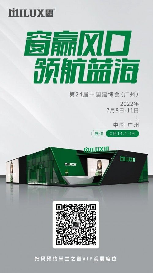 ??作為中國系統(tǒng)門窗行業(yè)的領(lǐng)軍品牌,米蘭之窗不斷引領(lǐng)中國門窗新風(fēng)尚,此次展會(huì)不僅是米蘭之窗對產(chǎn)品工藝創(chuàng)新展示,更是在獨(dú)具影響力的行業(yè)舞臺(tái)彰顯品牌綜合實(shí)力的亮劍之行。2022年品牌首秀即將拉開序幕,行業(yè)盛世紛呈,7月8日-11日,中國進(jìn)出口商品交易會(huì)展館(廣交會(huì)展館)C區(qū)14.1-16展位,米蘭之窗整裝待發(fā),勢必領(lǐng)潮中國建博會(huì),如約相”建“,聚享未來。 |