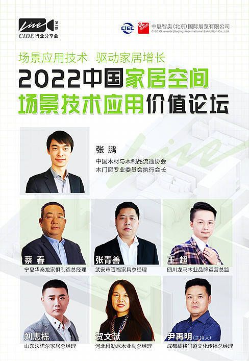 ↑“碼”上看直播 #直播預(yù)告 1、論壇主題: 2022中國家居空間場景技術(shù)應(yīng)用價值論壇 2、論壇時間 7月21日下午14:30-17:00 3、組織單位 聯(lián)合主辦 CIDE北京門業(yè)與定制家居展 金橋空間技術(shù)應(yīng)用 載銘門道策劃設(shè)計推廣全案機(jī)構(gòu) 轉(zhuǎn)播媒體 慧亞網(wǎng) 中華門窗網(wǎng) 好家傳媒 4、主題分享 2022家居空間場景技術(shù)應(yīng)用價值解碼 ——載銘門道策劃機(jī)構(gòu)負(fù)責(zé)人 尹再明(主持人) 5、核心議題 ①空間場景技術(shù)應(yīng)用核心要素需注意什么? ②空間場景技術(shù)在家居行業(yè)應(yīng)用有哪些商業(yè)價值? ③終端如何賦能渠道增長和創(chuàng)造用戶價值? 6、論壇嘉賓 中國木材與木制品流通協(xié)會木門窗專委會執(zhí)行會長 張鵬 寧夏華泰龍家俱制造有限公司總經(jīng)理 蔡 春 武安市百福家具有限公司總經(jīng)理 張青善 山東法諾爾家居有限公司總經(jīng)理 劉志棟 四川龍馬木業(yè)有限公司運(yùn)營總監(jiān) 王 超 河北拜勒尼木業(yè)有限公司副總經(jīng)理 賀文獻(xiàn)  7月21日下午14:30,展貿(mào)易app、展會官方視頻號“北京門業(yè)與定制家居展”將準(zhǔn)時開播,慧亞網(wǎng)、中華門窗網(wǎng)、好家傳媒也將同步轉(zhuǎn)播。 掃描或識別海報,提前報名鎖定直播間。報名完成后分享給朋友或朋友圈邀請好友報名/觀看直播,即有機(jī)會贏取精美好禮;直播中對品牌感興趣還可以點(diǎn)擊右下角提交意向信息,在線進(jìn)行商貿(mào)配對,趕快來參與~ CIDE Live 構(gòu)建家居行業(yè)線上商貿(mào)生態(tài)圈 CIDE Live是CIDE北京門業(yè)與定制家居展集選商、采購、互動和學(xué)習(xí)的線上商貿(mào)平臺。定期推出“大咖說定制”、“行業(yè)分享會”、“云端商貿(mào)配對”等系列直播,協(xié)助大家掌握行業(yè)最新動態(tài),聆聽大咖解析趨勢發(fā)展,拓展有效商貿(mào)聯(lián)系,解碼家居新驅(qū)力。 |