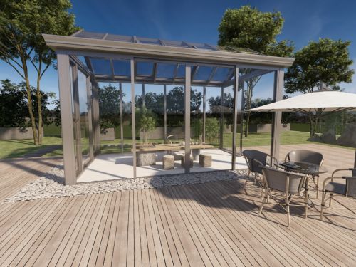 酷家樂陽光房設(shè)計效果圖 在門窗設(shè)計功能上,具備陽光房、異形窗、別墅設(shè)計能力,滿足弧面窗、防護格條、微通風扇、景觀玻璃護欄等各種系統(tǒng)窗方案,真實還原門窗產(chǎn)品結(jié)構(gòu)。特別是針對別墅設(shè)計,提供智能識別別墅戶型、自動疊加樓層、智能異形頂算法、一鍵適配園林場景等功能,助力設(shè)計師高效搭建設(shè)計方案,輕松拿下別墅大單。