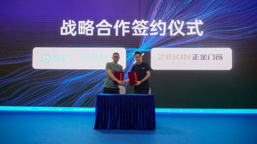左:帝奧斯門窗營銷總經(jīng)理張剛成 右:群核科技(酷家樂)聯(lián)合創(chuàng)始人兼CEO 陳航