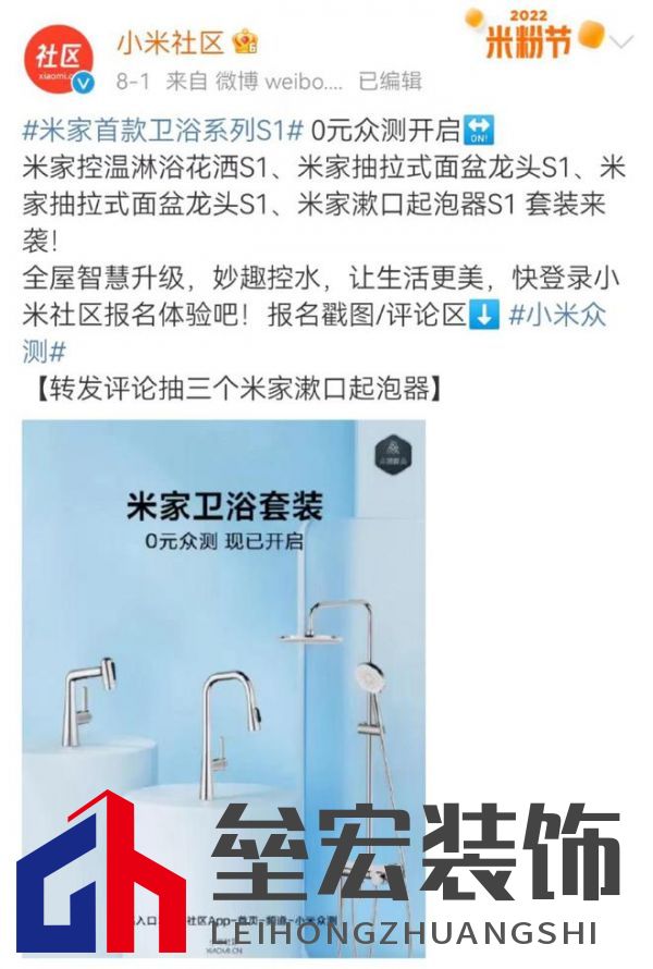 自手機圈脫穎而出后,小米開始性價比和質(zhì)價比的模式介入了與“家”和“生活”相關(guān)的多個企業(yè),小米生態(tài)鏈由此而生。 作為小米的自營智能家庭品牌,米家旨在給消費者帶來集可靠品質(zhì)、優(yōu)良設計、合理定價于一身的智能家居產(chǎn)品,涵蓋智能安防、智能廚衛(wèi)、智能家電、智能照明、軟裝家紡等多個品類。 2020年10月,小米公司曾對大白衛(wèi)浴進行戰(zhàn)略注資,這家智能五金衛(wèi)浴品牌也正式成為小米生態(tài)鏈企業(yè)的新成員。 8月1日,小米米家首款衛(wèi)浴系列S1發(fā)布,將于8月8日0點正式發(fā)布并開啟預售。這一動作也被視為小米正式進軍衛(wèi)浴領域! 此次,小米共推出了四款衛(wèi)浴系列產(chǎn)品,分別是米家控溫淋浴花灑S1、米家抽拉式面盆龍頭S1、米家抽拉式廚房龍頭S1以及米家漱口起泡器S1,售價低至49元。