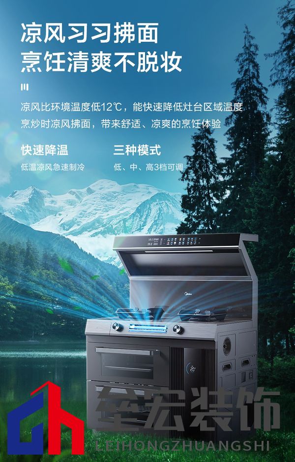 如今,美的站在智慧家庭場景下,創(chuàng)新推出了一款涼風(fēng)感集成灶K36,在涼爽的烹飪環(huán)境中成就百味美食。 制冷快速高效,讓舒適烹飪成為現(xiàn)實 從用戶需求方面考慮,夏天廚房的炎熱確實難以避免,而且客廳的空調(diào)又遠(yuǎn)水難解近渴。為解決困擾國人多年的“夏廚熱”,美的涼風(fēng)感集成灶K36在功能高度集成的基礎(chǔ)上,再添制冷功能,這也是美的基于用戶體驗需求,從綜合體感來實現(xiàn)“夏”廚做飯的舒適愉悅,實現(xiàn)了用戶從“功能”到“體驗”的需求升級。