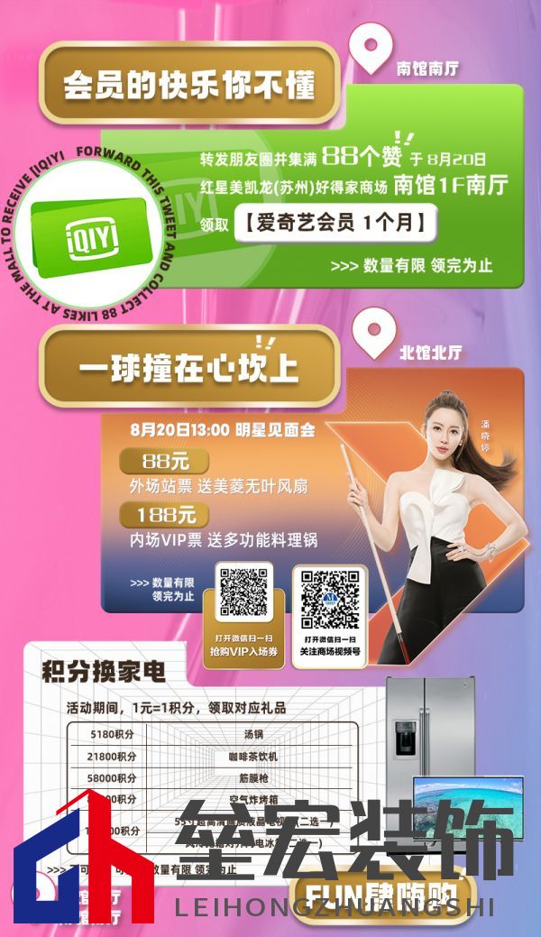 ??8月20日,這位世界冠軍&美好生活體驗(yàn)官 ??即將來(lái)到紅星美凱龍(蘇州)好得家商場(chǎng)! ??天后駕到,助力818FUN肆嗨購(gòu)節(jié) ??好禮自然少不了 ??這里有一份最全嗨購(gòu)攻略,快來(lái)查收! ??01 ??集贊送會(huì)員&明星見(jiàn)面會(huì)