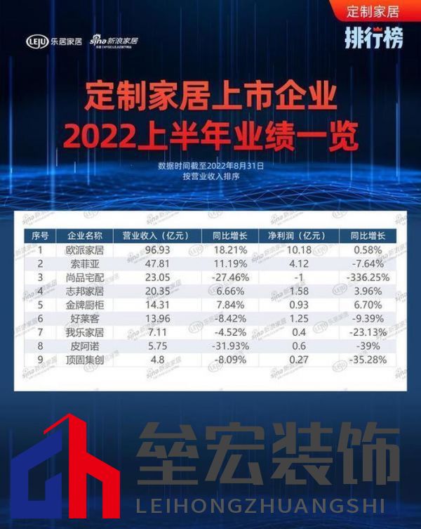 ??新浪定制家居訊 截至目前,九家上市定制家居企業(yè)已悉數(shù)發(fā)布“2022年上半年度業(yè)績報告”,歐派家居以營收、凈利潤雙料第一穩(wěn)居行業(yè)榜首。