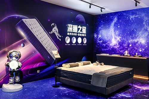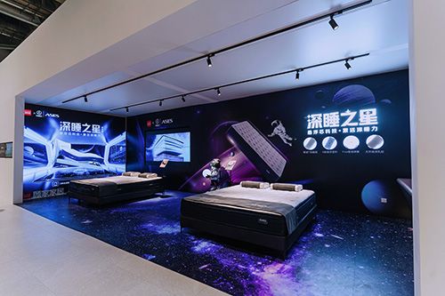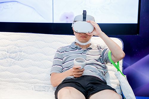 ▲顧家家居深睡之星床墊展區(qū) ??在深睡之星系列床墊展區(qū),與產(chǎn)品名完美契合的場景設(shè)計(jì)給人帶來身處宇宙星空的震撼之感。在深睡之星科技版體驗(yàn)專區(qū),顧家家居還配備了專門的VR眼鏡。利用AR虛擬技術(shù),通過融入視覺和聽覺的場景化體驗(yàn),參觀者在體驗(yàn)產(chǎn)品時(shí)可以身臨其境感受漫游星河的感覺,在空間的交互與時(shí)間的變幻中,真正享受深睡之星科技版的輕懸浮舒壓睡感和自由隨心的智能科技。