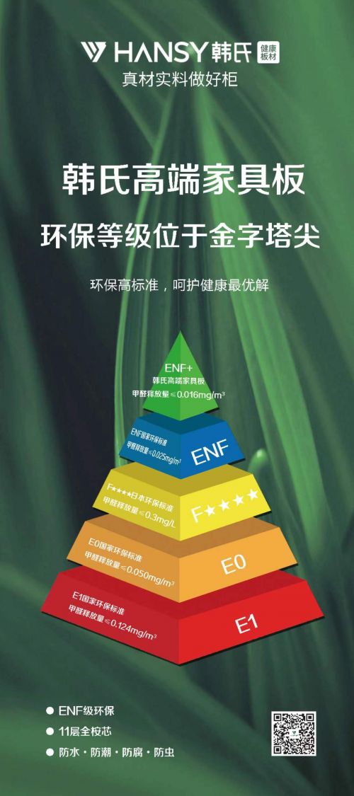 ??隨著消費(fèi)者對(duì)健康家居環(huán)境的重視,板材家居企業(yè)對(duì)環(huán)保、綠色產(chǎn)品的研發(fā)越來(lái)越提上日程。韓氏板材甲醛釋放量≤0.010mg/m3,數(shù)據(jù)優(yōu)于ENF級(jí)(≤0.025mg/m3)排放標(biāo)準(zhǔn),深刻展示了韓氏在低碳環(huán)保上的重視態(tài)度。