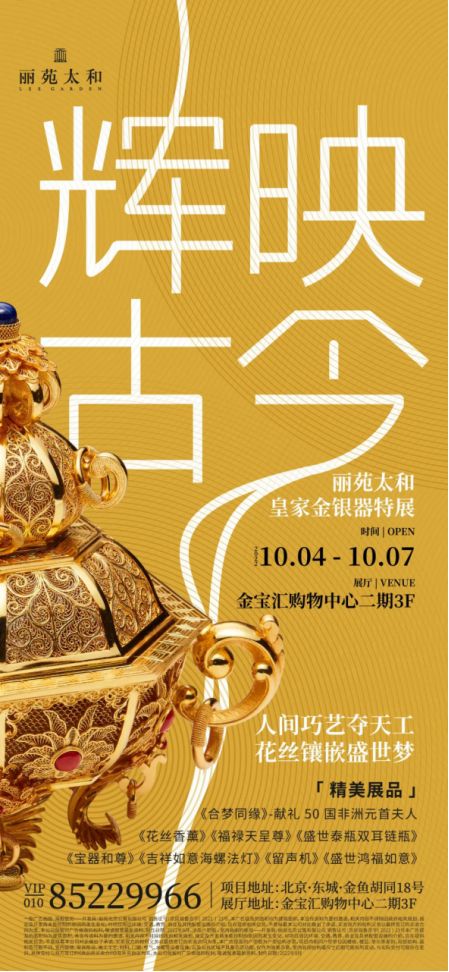 —— 2022.10.4–10.7 邀你共鑒中華技藝之美  人間巧藝奪天工 花絲鑲嵌盛世夢(mèng) 2022年10月4日-7日 “輝映古今”皇家金銀器特展 在麗苑太和盛大舉行  八件精美展品 傾世而來 氣派恢宏 《合夢(mèng)同緣》-獻(xiàn)禮 50 國非洲元首夫人 《花絲香薰》《福祿天呈尊》 《盛世泰瓶雙耳鏈瓶》《寶器和尊》 《吉祥如意海螺法燈》《留聲機(jī)》 《盛世鴻福如意》     10月5日 中國工藝美術(shù)大師 花絲鑲嵌國禮制作大師 ——趙春明 親臨現(xiàn)場(chǎng) 與麗苑貴賓共話傳統(tǒng)文化與非遺技藝 在金銀器的世界里 感受華夏民族的非凡智慧與藝術(shù)創(chuàng)造力     < 3000多年歷史 燕京八絕之一 花絲鑲嵌 > “采金為絲,妙手編結(jié),嵌玉綴翠,是為一絕?!?/p> 花絲鑲嵌工藝,主要用于皇家飾品制作,距今已有3000余年歷史。它起源于春秋戰(zhàn)國時(shí)代,在經(jīng)濟(jì)發(fā)達(dá)的唐宋時(shí)期得到迅速發(fā)展,又因絲綢之路美名遠(yuǎn)揚(yáng),在明清達(dá)到巔峰鼎盛?;ńz鑲嵌尤以編織、堆壘技法見長(zhǎng),常用點(diǎn)翠工藝,取得金碧輝煌的效果。2008年6月花絲鑲嵌制作技藝被列入國家級(jí)非物質(zhì)文化遺產(chǎn)名錄。    “我們這一行看著很枯燥很乏味,但是鉆進(jìn)去以后,了解它的發(fā)展歷史以后,你會(huì)非常喜歡它,熱愛它,能帶給年輕人充分的自信。我始終希望這么優(yōu)秀的傳統(tǒng)文化和傳統(tǒng)技藝能一直傳承下去?!?/p> ——中國工藝美術(shù)大師、非物質(zhì)文化遺產(chǎn)花絲鑲嵌傳承人趙春明  趙春明大師從事花絲鑲嵌至今已40余年,除了花絲鑲嵌,他還精通鏨刻、摟胎等手工技藝,在設(shè)計(jì)理念上亦有獨(dú)到之處,不僅制作了許多精美的花絲鑲嵌作品如《圓明園-金玉大水法》、《和平暢想》、《合夢(mèng)同緣》、《黃鶴樓》、《鸛雀樓》等,還為首都博物館、十三陵博物館、杭州博物館等復(fù)制和修復(fù)了《烏紗翼善冠》、《六龍三鳳冠》、《金翼善冠》、《金執(zhí)壺》等數(shù)百件文物。   < 偉大的作品 在時(shí)光淬煉中誕生 > 精益求精、專屬性、唯一性,偉大作品在時(shí)光淬煉中誕生。 麗苑太和亦是如此,作為富華置地2022年在北京的又一力作,是繼「長(zhǎng)安太和」后延續(xù)富華集團(tuán)在內(nèi)城的頂奢產(chǎn)品系。  東城區(qū)是北京歷史文化遺存、胡同四合院與非物質(zhì)文化遺產(chǎn)最為密集的地區(qū),也是名副其實(shí)的“首都文化中心區(qū)”。麗苑太和位于東城區(qū)核心處,金魚胡同18號(hào),一面是以故宮為代表的恢弘的皇家建筑與園囿,一面是以金寶街為代表的前衛(wèi)的全球化潮流街區(qū)。在這里,傳統(tǒng)文化與潮流文化共生共榮,如花絲鑲嵌絕世工藝一般,二者合而為一交織出極富戲劇張力的多元化內(nèi)城生活。  |