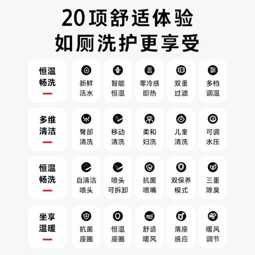 除了深度除臭需求,面對不同家庭成員的其他不同需求,“除臭卷王”配置了20多項(xiàng)完備的功能應(yīng)對,例如老年人如廁后擦拭難,擦拭不干凈引發(fā)的一系列健康問題,“除臭卷王”對應(yīng)擁有落座感應(yīng)、兩重過濾新鮮活水、自潔抗菌噴嘴等高科技功能,操作簡單易學(xué),比較人性化。