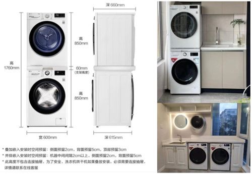LG洗烘套裝外觀采用簡(jiǎn)約時(shí)尚的白色,無(wú)論是什么樣的家居風(fēng)格都能輕松駕馭??梢源钆涫褂靡材軉为?dú)運(yùn)行,專機(jī)專用,特別方便。而且擺放靈活,可以上下疊放,也可以并排擺放。 洗衣機(jī)與干衣機(jī)的尺寸分別為:600mm*615mm*850mm和600mm*660mm*850mm(長(zhǎng)寬高順序),對(duì)于居住面積較小的家庭來說,它們可以上下疊放,空間利用率更高。