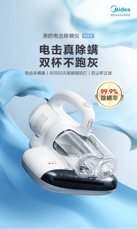 ??隨著消費(fèi)升級(jí),“精致生活”“高效清潔”等理念的快速興起,作為清潔電器重要組成部分,除螨儀抓住了“精致懶”的現(xiàn)代人對(duì)于貼身清潔的痛點(diǎn),獲得消費(fèi)者的青睞。作為國內(nèi)小家電的頭部品牌,美的創(chuàng)新性推出除螨儀MX5,領(lǐng)先采用雙塵杯設(shè)計(jì),精密分濾塵螨,雙杯不跑灰,避免造成二次污染,真正實(shí)現(xiàn)“科技改變生活”,提升居家幸福指數(shù)。