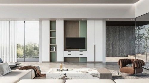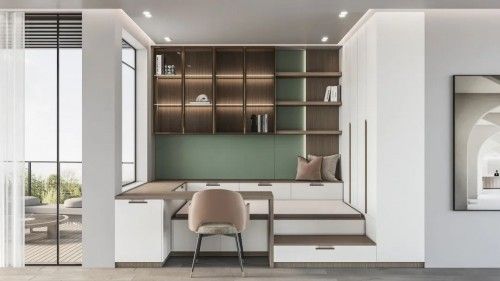 ??經(jīng)典白配原木紋色 ??經(jīng)典白配原木紋色,馬卡龍黛青作為點綴色后,更顯清新活力的時尚氣質(zhì)。