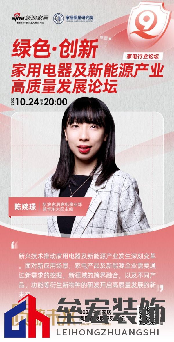 ??家用電器及新能源產(chǎn)業(yè)日益成為民生行業(yè)至關(guān)重要的組成部分,也是滿足人民美好生活需要的重要載體。那么在產(chǎn)業(yè)升級需求下,企業(yè)如何以創(chuàng)新為引領(lǐng),以應(yīng)用促發(fā)展,大力推動家用電器及新能源產(chǎn)業(yè)綠色及高質(zhì)量發(fā)展? ??腳踏三大綠色賽道,創(chuàng)新推動高質(zhì)量發(fā)展。2022年10月24日晚上20:00,由新浪家居家電事業(yè)部策劃的“綠色·創(chuàng)新·高質(zhì)量 家用電器及新能源產(chǎn)業(yè)發(fā)展新動力”線上論壇圓滿召開。 ??新浪家居家電事業(yè)部主編兼華東大區(qū)主編 陳婉璟作為本次論壇主持人,表示: