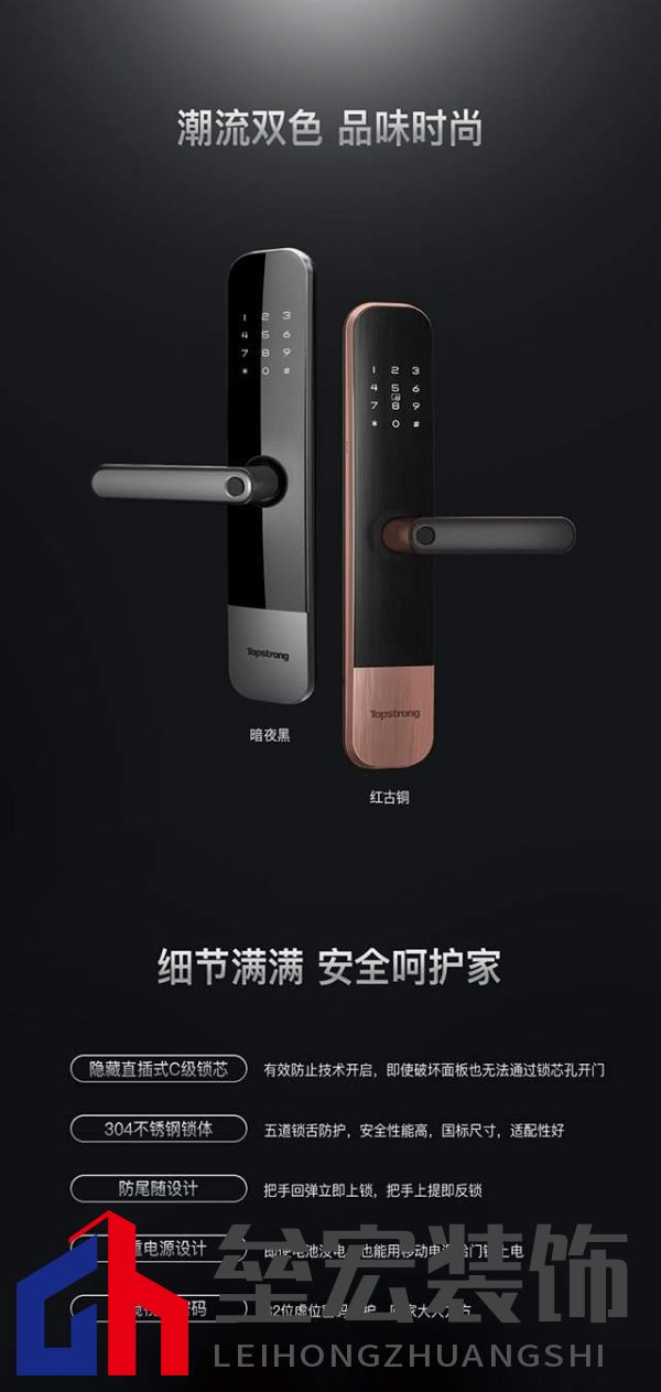 ??防窺視偽密碼,給你安全的障眼法 ??有時候旁邊有人看著你輸密碼,而你又不想讓別人知道,是不是覺得有點尷尬?頂固W3系列智能鎖,配置了防窺視偽密碼功能,輸入密碼時,正確密碼前后可隨意輸入數(shù)字,防止“別有用心”的人通過指紋查看密碼痕跡,就算有人在旁邊也可以大大方方輸密碼,不用遮掩,安全系數(shù)無可挑剔。 ??此外,頂固W3系列智能鎖還具備人性化的一次性臨時密碼,比如親戚朋友上門拜訪,而你還沒到家,就可以發(fā)臨時密碼給他們開門,一次性使用,用完就永久失效,既方便又安全。 ??304不銹鋼鎖體,五重加強防護 ??門鎖擔當著家庭安全衛(wèi)士的重要責任,安全性是它必備且首要的技能。頂固深知家庭安全防護的需求,所以在材料的選擇上追求卓越品質(zhì)。頂固W3系列智能鎖的鎖體、鎖舌及關(guān)鍵傳動部分均為304不銹鋼打造,堅固耐磨,防撬、防鋸、防沖撞、防銹、防刮花,構(gòu)筑起城堡般牢固的家。 ??超高顏值,一握即開,和煩人的鑰匙說拜拜,頂固W3系列智能鎖,暗夜黑、紅古銅雙色呈現(xiàn),成就完美的防線,給你一個便捷、安全的家! |