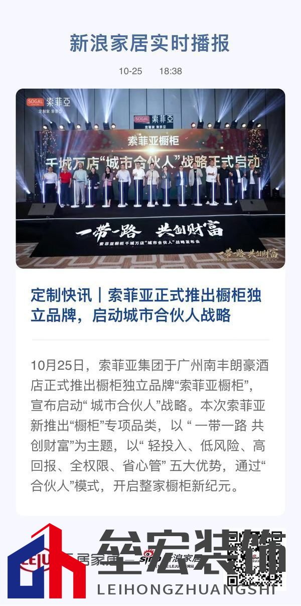 ??新浪定制頻道訊 10月25日,索菲亞集團(tuán)于廣州南豐朗豪酒店正式推出櫥柜獨立品牌“索菲亞櫥柜”,宣布啟動“ 城市合伙人”戰(zhàn)略。本次索菲亞新推出“櫥柜”專項品類,以 “ 一帶一路 共創(chuàng)財富”為主題,以“ 輕投入、低風(fēng)險、高回報、全權(quán)限、省心管” 五大優(yōu)勢,通過“ 合伙人”模式,開啟整家櫥柜新紀(jì)元。