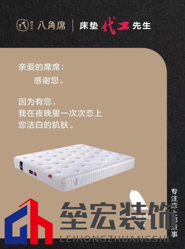??佛山市八角席家具有限公司,坐落于世界最大的家具生產(chǎn)重鎮(zhèn)---佛山龍江。是一家現(xiàn)代化的生產(chǎn)型企業(yè),堅持產(chǎn)銷分離,把制造做到極致。始終秉承“價值創(chuàng)新,用戶至上,合作共贏”的理念,為國內(nèi)外高端睡眠品牌提供床墊代工生產(chǎn)服務(wù),在業(yè)界享有“床墊代工先生”的美譽。并獲得“企業(yè)信用AAA等級證書,企業(yè)資信AAA等級證書,質(zhì)量服務(wù)誠信AAA單位,重合同守信用AAA信用企業(yè),誠信經(jīng)營示范AAA單位,重質(zhì)量守信用AAA單位,重服務(wù)守信用AAA企業(yè)”等榮譽稱號。八角席家具工廠始終堅持“顧客滿意是我們永遠的宗旨”為經(jīng)營方針,為客戶提供完善的售前、售中,售后的服務(wù),和優(yōu)質(zhì)的產(chǎn)品。努力讓更多人可以享受到更好的睡眠品質(zhì),走向更廣闊的市場。 ??八角席床墊的八大系列- ??#八角席 ??#床墊代工先生 ??#專注床上那點事 ??#八仙過海、各顯神通 ??#八大產(chǎn)品體系、八維睡眠理念