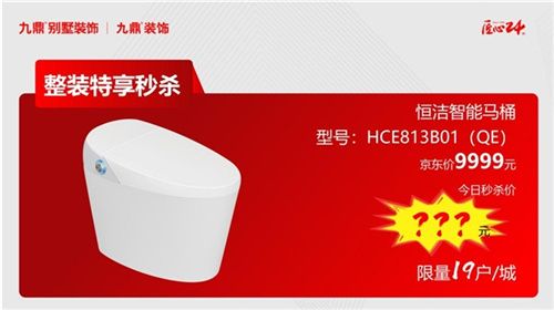 整裝特享秒殺 恒潔智能馬桶,型號:HCE813B01(QE),京東價9999元,今日秒殺價???(限量19戶/城)