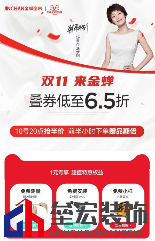 ??金蟬窗簾在今年的雙十一給新老顧客一個鉅惠折扣,產(chǎn)品全是65折,而且在付定金和尾款的時候還可以搶半價優(yōu)惠。馬上雙十一活動要結(jié)束了,但是雙十一現(xiàn)貨半價優(yōu)惠還沒有收尾,金蟬窗簾在11月10日20點開始到11月11日11點59分下單并付款的第1-20個訂單依然是半價優(yōu)惠,前21-50名的顧客是窗紗半價,半價活動雖與其它優(yōu)惠券不可疊加使用,但是半價優(yōu)惠可謂是窗簾行業(yè)的前所未有,搶到就是賺到。 ??注重家裝的朋友都知道,金蟬窗簾在窗簾行業(yè)中算是先行者,早在1988年,金蟬就成為國內(nèi)窗簾行業(yè)優(yōu)秀的生產(chǎn)制造商和銷售商,然后專注主打布藝窗簾。金蟬從開始就把品質(zhì)和創(chuàng)新放在前位,從首創(chuàng)窗紗噴花工藝,引領(lǐng)窗紗進入彩色時代,到成功研發(fā)出專利新品“分解甲醛功能性窗簾”,金蟬的產(chǎn)品質(zhì)量一直在線,產(chǎn)品也逐漸遍布全國各地,并遠(yuǎn)銷世界60多個國家和地區(qū)。再加上金蟬還是馬伊琍代言的,品牌力持續(xù)上升,近三年金蟬窗簾在天貓金蟬旗艦店連續(xù)三年成為雙十一銷量冠軍。