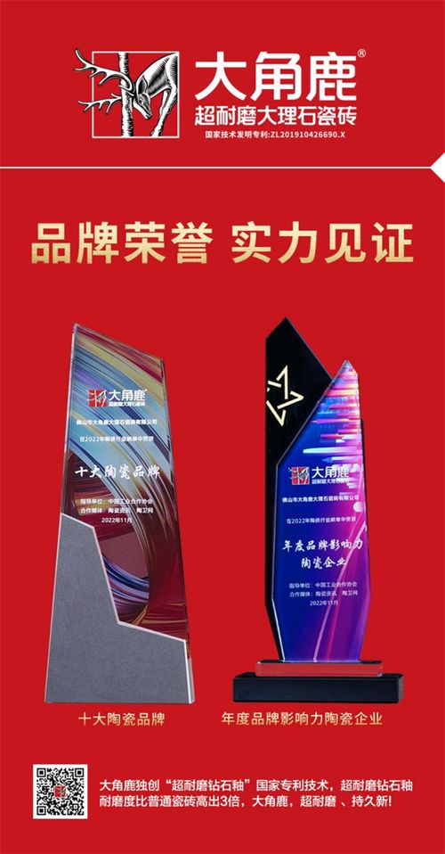 ??從開創(chuàng)到引領(lǐng),大角鹿深耕超耐磨領(lǐng)域,不斷刷新全球建筑設(shè)計裝飾材料技術(shù)的新高度,在瓷磚耐磨、空間整體運(yùn)用等實用性方面實現(xiàn)了技術(shù)革新和重大突破,引領(lǐng)了行業(yè)創(chuàng)新風(fēng)潮。此次上榜“十大陶瓷品牌”和“年度品牌影響力陶瓷企業(yè)”,是業(yè)界對大角鹿瓷磚綜合實力的高度認(rèn)可和鼓勵。未來,大角鹿將繼續(xù)堅持技術(shù)創(chuàng)新,致力于超耐磨陶瓷新材料的研發(fā)與生產(chǎn),不斷滿足社會進(jìn)步和人民日益增長的美好生活需求,讓億萬家庭使用上高品質(zhì)的超耐磨瓷磚!