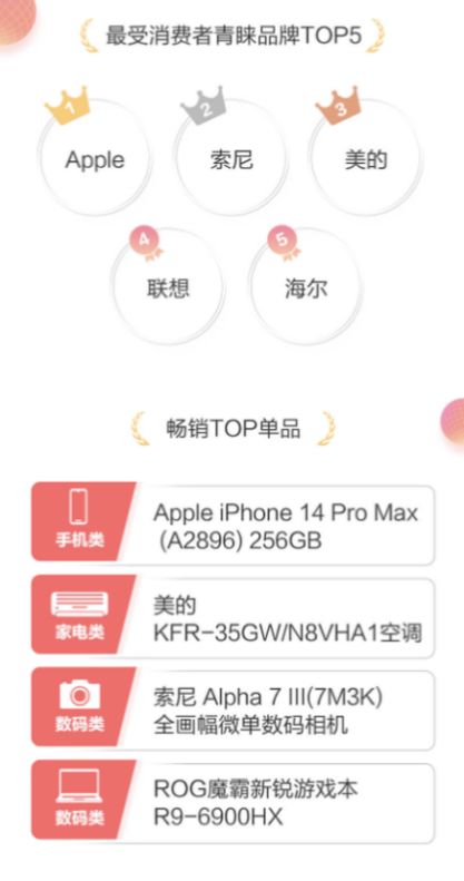 ??值得一提的是,京東11.11期間,在京東MALL和超體的銷售榜單里,Apple、索尼、美的、聯(lián)想、海爾等品牌躋身最受消費(fèi)者喜愛的電器品牌TOP5。而Apple iPhone 14 Pro Max (A2896) 256GB、美的 KFR-35GW/N8VHA1空調(diào)、索尼 Alpha 7 III(7M3K)全畫幅微單數(shù)碼相機(jī)、ROG魔霸新銳游戲本R9-6900HX等數(shù)碼潮玩好物也強(qiáng)勢(shì)登陸暢銷單品榜單。從新款iPhone手機(jī)到微單數(shù)碼相機(jī),再到游戲筆記本,不難發(fā)現(xiàn),消費(fèi)者在購物過程中更愿意為“愛好”買單, 悅己消費(fèi)成為他們?cè)诰〇|電器線下門店的購物關(guān)鍵詞。