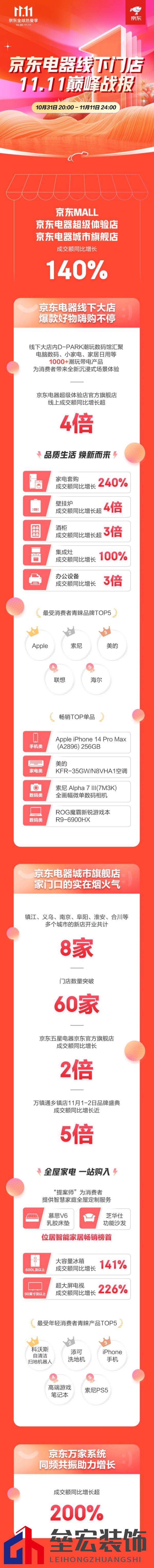 ??以“給生活多點(diǎn)實(shí)在”為主題的京東11.11,在極致性價(jià)比、海量品質(zhì)好物、以及多重貼心服務(wù)保障下,充分激發(fā)了消費(fèi)活力。其中,京東電器線下門店在京東11.11期間,依托線上線下融合的全渠道業(yè)態(tài),以覆蓋全渠道的品質(zhì)商品與優(yōu)質(zhì)服務(wù)、科技感十足的沉浸式體驗(yàn)場景、以及豐富的線下活動(dòng),激發(fā)了當(dāng)?shù)叵M(fèi)者的消費(fèi)熱情。也由此獲得爆棚的人氣。京東MALL、京東電器超級(jí)體驗(yàn)店(以下簡稱“京東超體”)、京東電器城市旗艦店等京東電器線下大店,成交額同比增長140%。同時(shí),京東電器城市旗艦店(以下簡稱“京東城旗”)也在京東11.11期間,門店數(shù)量突破60家。京東電器線下門店已經(jīng)逐漸成為全國各地消費(fèi)者首選的頭號(hào)潮玩科技中心,并由此成為實(shí)體經(jīng)濟(jì)高質(zhì)量發(fā)展的重要增量場。