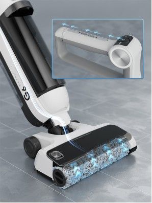 ??因?yàn)闈L刷結(jié)構(gòu)的原因,洗地機(jī)在清潔家庭時(shí)常常因滾刷邊產(chǎn)生清潔死角,為此,如添可、追覓甚至還設(shè)計(jì)了貼邊設(shè)置,然而即便如此,該品牌旗艦款添可芙萬(wàn)2.0仍舊存在2cm清潔死角,追覓H11Max則存在2.4cm死角。 ??為此,美的旗艦洗地機(jī)G6T創(chuàng)新滾刷結(jié)構(gòu)設(shè)計(jì),打造“零死角 輕松拖“清潔科技,帶來(lái)地面清潔0死角、省力定點(diǎn)清潔模式、不費(fèi)力雙項(xiàng)助力貼心功能。顛覆性做出0邊距滾刷,滾刷和墻面間距離為0cm,可真正實(shí)現(xiàn)貼邊無(wú)死角。
