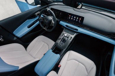 ??(影豹J20混動版) ??影豹J20混動版的造型設(shè)計(jì)延續(xù)燃油版戰(zhàn)機(jī)外觀,機(jī)翼前臉配合兩側(cè)的多邊形造型,激進(jìn)帥氣,展現(xiàn)出對比度極高、層次感豐富的以戰(zhàn)機(jī)為靈感的設(shè)計(jì)理念。加上極具辨識度的超星銀外觀幻彩色彰顯混動屬性與科技質(zhì)感,科技藍(lán)白主題內(nèi)飾明快清新,帶給輕友如飛行員翱翔天空的感覺。