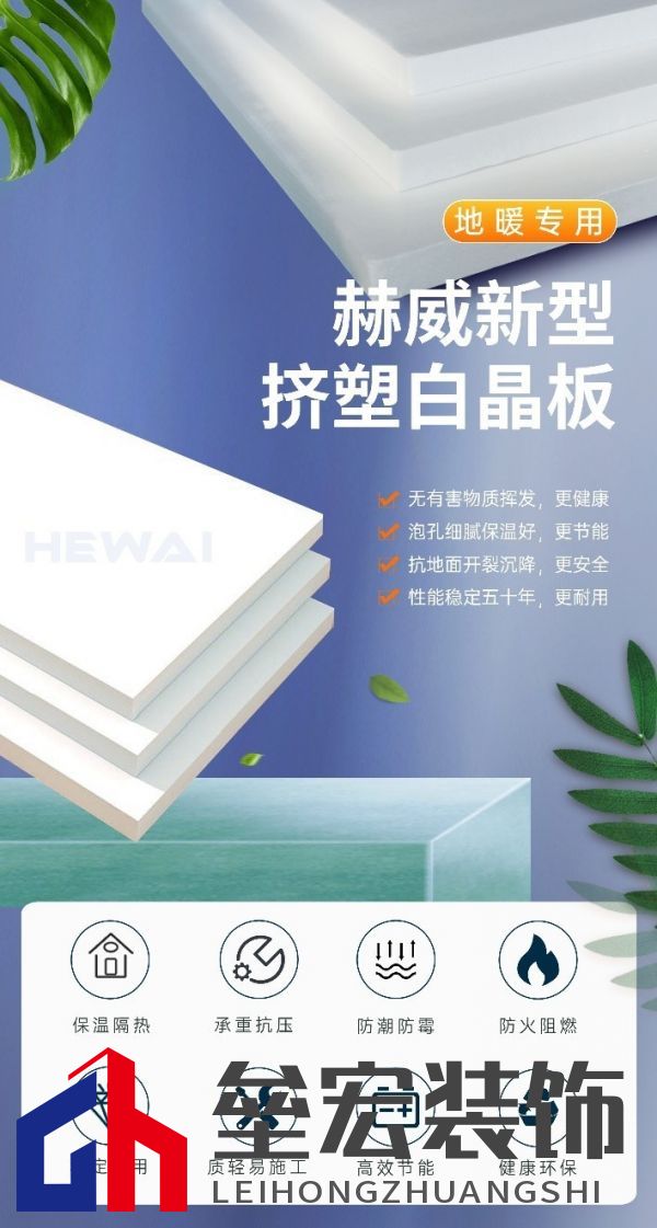 ??三、高防腐,低吸水,更耐用 ??赫威新型擠塑白晶板具有優(yōu)異的防腐蝕、防老化、防火阻燃性能,即使在高水蒸氣壓力下,仍能保持其優(yōu)異的品質(zhì),更經(jīng)久耐用。其吸水率低于0.5%,可有效解決其他材料漏水滲透、發(fā)霉腐蝕、結(jié)霜冷凝等問題,即便長期泡水也能維持不變,使用壽命達(dá)50年以上。 ??四、高品質(zhì)、好原料,更環(huán)保 ??當(dāng)前,市場上充斥著各種回收料、有害塑料生產(chǎn)的地暖保溫板,其在地暖使用環(huán)境下會產(chǎn)生氯氣、甲醛等有害氣體及致癌物質(zhì),長期使用對人體健康會造成極大傷害。 ??赫威新型擠塑白晶板采用100%全新環(huán)保原材料,通過先進(jìn)的無氟無溴技術(shù)生產(chǎn),零添加劑,高溫下無任何有害物質(zhì)釋放,真正環(huán)保健康更安全。