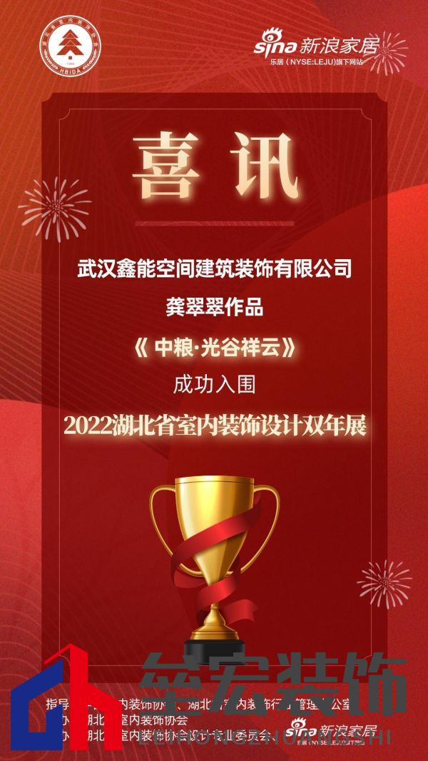 綠色設計,大美荊楚,由中國室內(nèi)裝飾協(xié)會、湖北省室內(nèi)裝飾行業(yè)管理辦公室的指導,湖北省室內(nèi)裝飾協(xié)會主辦的2022湖北室內(nèi)裝飾設計雙年展,在室內(nèi)裝飾設計行業(yè)打造了一場全省范圍的設計盛會,首輪評選百余套作品,70余套優(yōu)秀作品成功入圍。 在智能化、人文化、健康舒適化的時代趨勢下,雙年展的舉辦,以新時代、新理念、新創(chuàng)意,提升室內(nèi)裝飾設計水平,為設計師進行品牌賦能,弘揚荊楚設計精神與風貌。針對這項有權威性、有知名度的專業(yè)賽事,武漢各大裝飾公司及設計工作室積極響應,因為參加雙年展對設計師開拓視野、加強行業(yè)交流、提升專業(yè)水平具有重要意義。 雙年展專家組評委秉承公正公平、優(yōu)中選優(yōu)的原則,經(jīng)過層層篩選,初評結果現(xiàn)已出爐。 設計滋養(yǎng)生活,生活反哺設計,優(yōu)秀的作品,總是離不開對藝術矢志不移的熱情與探索,以及對美與愛的深度感知,雙年展入圍作品均對此進行了完美的詮釋。 武漢鑫能空間建筑裝飾有限公司設計師龔翠翠原創(chuàng)作品《中糧?光谷祥云》,成功入圍2022湖北省室內(nèi)裝飾設計雙年展,以獨特的設計風格,和優(yōu)秀的設計能力,展示設計理念和創(chuàng)意。