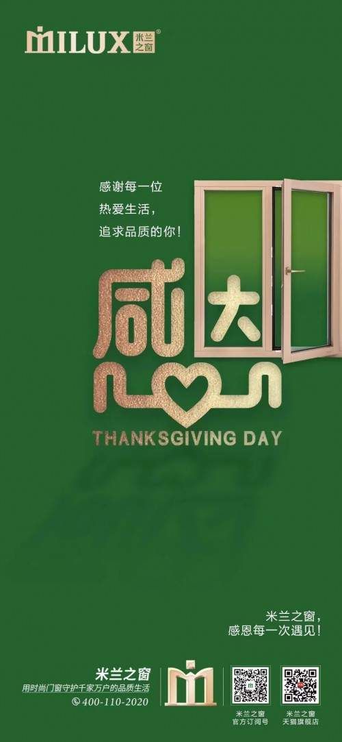 ??知恩于心,感恩于行。感恩予我生活甘甜,伴我風里雨里的你。致謝感恩節(jié),讓我們能在氣溫漸寒的冬日中向生命中重要的人道聲感謝。美好生活,用心感恩,用一樘高品質(zhì)門窗讓家升溫,開啟美好家居生活,用愛溫暖彼此。