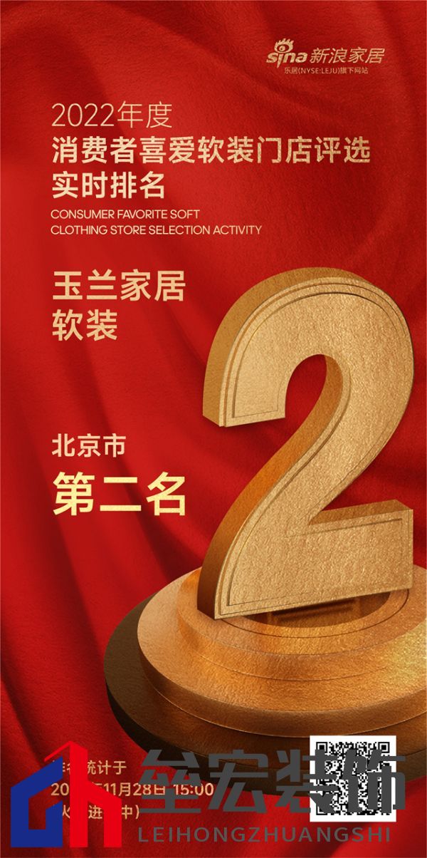 此次評(píng)選中,截止發(fā)稿日期,玉蘭家居軟裝憑借健康環(huán)保的優(yōu)質(zhì)產(chǎn)品、超值、藝術(shù)、周到的消費(fèi)體驗(yàn)體驗(yàn),在此次評(píng)選中以超強(qiáng)人氣,暫列北京市第二名。