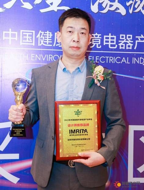 ??近日,由慧聰舉辦的2022年中國健康環(huán)境電器產(chǎn)業(yè)峰會活動中,高端全屋凈水品牌--IMRITA愛瑪特被評為"設(shè)計師推薦品牌"這一獎項殊榮,設(shè)計師推薦品牌是對產(chǎn)品品質(zhì)、創(chuàng)新研發(fā)、設(shè)計應(yīng)用展示的認(rèn)可和嘉獎。