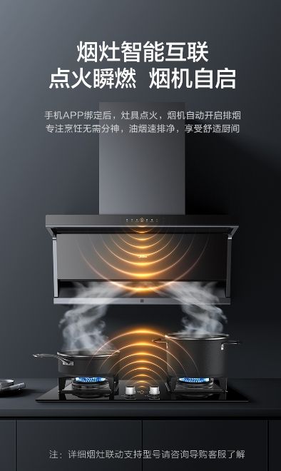煙灶聯(lián)動 智凈廚房更安心 美的新靜吸煙灶X2S還支持煙灶互聯(lián),用戶可以通過長按煙灶聯(lián)動及灶具旋鈕打火實現聯(lián)動。當灶具點火烹飪時,煙機就會自動開啟排煙系統(tǒng),實現速排油煙,而不必在炒菜時手忙腳亂地開啟油煙機,讓你輕松專注烹飪無需分神,即便進行爆炒,也不會造成油煙逃逸和擴散。