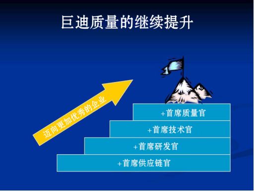 ??今年11月,湖南巨迪科技集團(tuán)股份有限公司(以下簡(jiǎn)稱“巨迪集團(tuán)”)正式發(fā)布了統(tǒng)籌下的新質(zhì)量管理體系。巨迪集團(tuán)旗下的巨迪櫥柜、巨迪定制、巨迪木門(mén)作為全國(guó)知名的家居品牌,其新一代管理團(tuán)隊(duì)、管理體系的正式亮相引起定制家居行業(yè)的火爆關(guān)注,巨迪品牌發(fā)布了包括首席質(zhì)量官、首席技術(shù)官、首席供應(yīng)鏈官、首席研發(fā)官等職務(wù)。新體系的建立是巨迪集團(tuán)持續(xù)領(lǐng)先的重要一步。其中,首席質(zhì)量官制度的設(shè)立,是巨迪集團(tuán)在加強(qiáng)質(zhì)量管理方面的新舉措,是巨迪品牌在高質(zhì)量發(fā)展之路上邁出的新步伐。