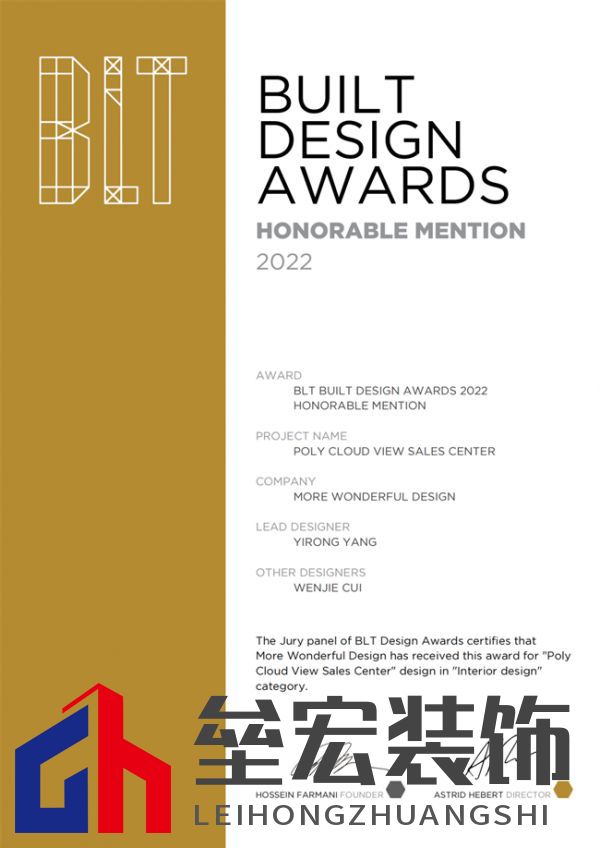 保利·云璟售樓部 獲獎證書 BUILT DESIGN AWARD