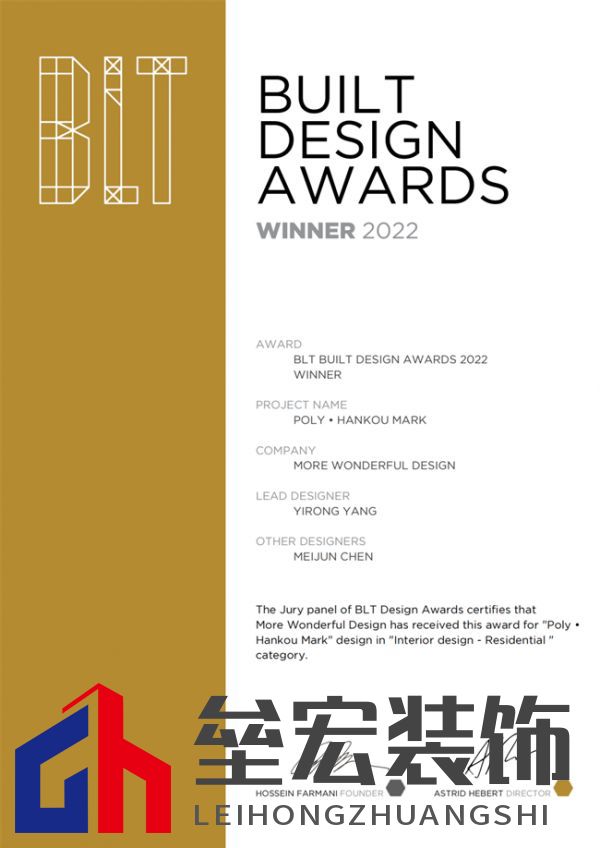 在2022美國BLT建筑設(shè)計大賽中,美林設(shè)計機(jī)構(gòu)作品脫穎而出,一連斬獲兩大獎項。其中,【長投保利·漢口印】榮獲優(yōu)勝獎(Winner),【保利·云璟售樓部】喜獲優(yōu)秀獎(Honorable Mention)! 據(jù)悉,本屆賽事收到了來自全球51個國家共計650多份作品。此次國際賽事,向來具備國際視野的美林設(shè)計機(jī)構(gòu)憑借其前瞻創(chuàng)意與多元化的設(shè)計手法,又一次獲得了國際專業(yè)評審的肯定。