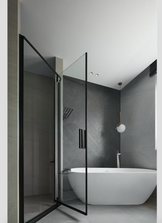 ??主衛(wèi)以穩(wěn)重的深灰色為主,與客廳灰色石材相呼應(yīng)。白色的浴缸增添了不少度假的氣息,享受泡澡放空的時(shí)刻。干濕分離的設(shè)計(jì),讓居者使用更為便捷。