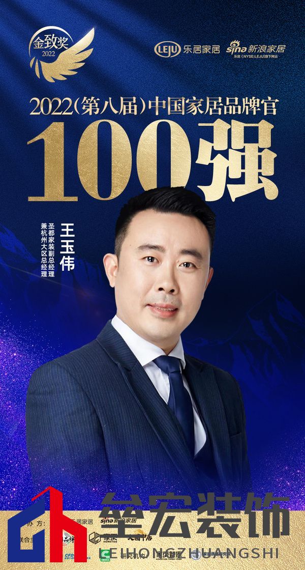 ?新浪家居訊 2022年12月26日,『趁勢·再起——2022中國家居新時代盛典暨金致獎頒獎典禮』在云端盛大開幕。圣都家裝王玉偉榮獲「2022(第八屆)中國家居百強(qiáng)品牌官」稱號。