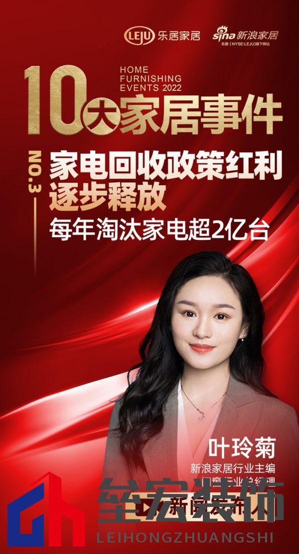 ??新浪家居訊 由樂居家居主辦,新浪家居承辦,大國品牌、家頁智庫、大國中居聯(lián)合主辦的『趁勢·再起——2022中國家居新時代盛典暨金致獎頒獎典禮』于12月26日下午14:30在云端盛大開幕。 ??為更好地記錄行業(yè)發(fā)展軌跡,在本次盛會中,新浪家居以媒體視角聚焦行業(yè)熱點,特別盤點了「2022家居十大事件」,與大會一同回顧今年中國家居領(lǐng)域發(fā)生的標(biāo)志性事件,感受家居行業(yè)在特殊歷史階段下經(jīng)歷的全新挑戰(zhàn)。 2022十大家居事件③|家電回收政策紅利逐步釋放 每年淘汰家電超2億臺 5月20日,國家發(fā)改委、工信部、生態(tài)環(huán)境部辦公廳三部門聯(lián)合發(fā)布通知,要求家電生產(chǎn)企業(yè)完成廢舊家電目標(biāo)回收任務(wù)。據(jù)發(fā)改委數(shù)據(jù)顯示,我國家電保有量已超過21億臺,每年淘汰廢舊家電量達1億至1.9億臺,并以平均每年20%的漲幅增長,預(yù)計2022年家電報廢量將超2億臺,如此龐大的市場保有量,在“雙碳”減排政策紅利的加持下,正逐漸催生一批以家電回收與以舊換新業(yè)務(wù)為第二增長曲線的綠色家電企業(yè)。 |