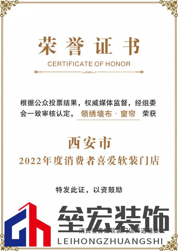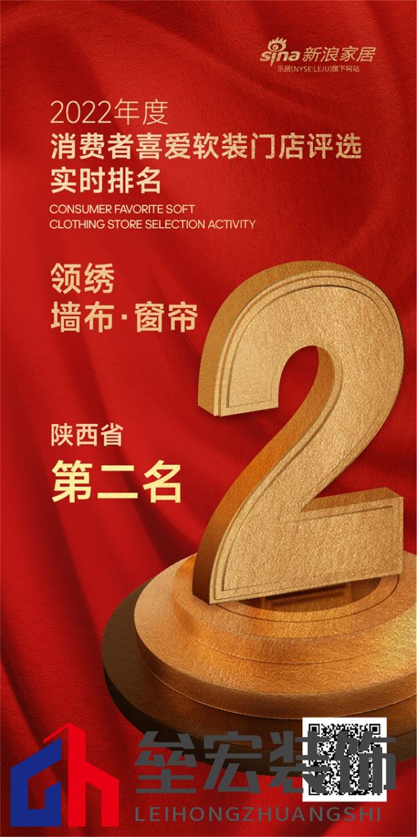 此次評(píng)選中,領(lǐng)繡 墻布·窗簾憑借精益求精的周到服務(wù)、多元的優(yōu)質(zhì)產(chǎn)品、極具美學(xué)的獨(dú)家定制等優(yōu)質(zhì)口碑,榮獲《2022年度消費(fèi)者喜愛軟裝門店評(píng)選》陜西省第二名。